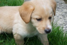 Parker is a sweet yellow lab mix. He and his siblings are wonderful little puppies that are learning to go outside. They are typical puppies, playful and sweet.