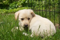 Puck is a sweet yellow lab mix. She and her siblings are wonderful little puppies that are learning to go outside. They are typical puppies, playful and sweet.