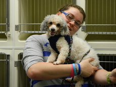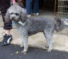 Puppet is a female silver miniature poodle, about 1-2 years old and 17 1/2 lbs. She was turned in to a shelter down south because her owners were moving. She is the sweetest little girl you ever want to meet. She is housetrained, loves to ride in the car, loves other dogs and kids too. She is very friendly and affectionate. She would make a great family pet and best of all, she does not shed and is hypoallergenic. Puppet really loves people and should be an only dog so she can have all of the attention. Thank you Nancy Corbett for sponsoring my vet care!