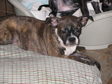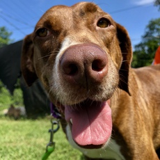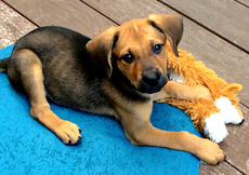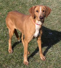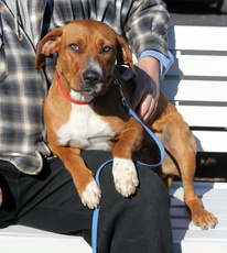Prudence is a beautiful Ridgeback/Boxer mix, about a year old and 50 lbs. and very sweet. This big girl is so beautiful and loves to play with soft toys. She loves carrying them around and making them squeak. She also plays like a boxer and uses her front paws to "box". It's really cute to watch her do that when she plays with other dogs.