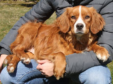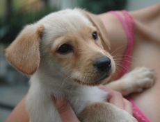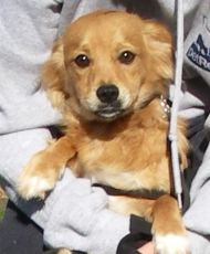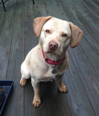 Paris is an adorable female Lab/Spaniel mix, about 5 months old and as sweet as can be! She looks like a mini lab and very calm for a puppy. And, she loves to cuddle next to you and play with her tennis ball. Great puppy.