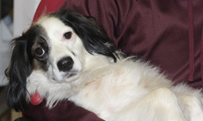 This sweet little guy is about 5 years old and around 20 lbs. He is very sweet and happy. A nice and gentle boy. Likes to sit on your lap. Please fill out an adoption application.