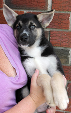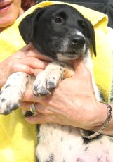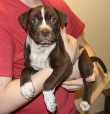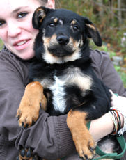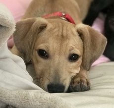 is one of Tammy's puppies and the smallest of the litter. She and her siblings are about 8 weeks old and weigh around 10 lbs. They are very sweet, playful and snuggly. We are guessing they will be on the medium-large side. Please fill out an adoption application.