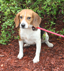 Princess is a very sweet little girl, under a year old. She looks like a beagle/pointer mix. She is shy when she first meets you, but warms up quickly and then has lots of kisses for you. She is playful, but is also calm. She loves sitting with you on the couch watching TV and being petted. Her tail starts wagging and her face lights up when you come into the room. She is friendly with her foster siblings, and loves people as well. What a great addition she will be to your family.