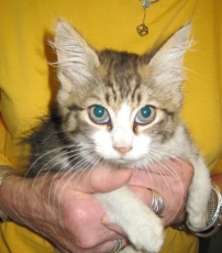 This gentle girl is just a love. She is just around 1 year old and about 11 lbs. She is great with other animals and loves people. She is on the calm side.