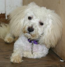 Puddin is a sweet little Maltese/Poodle mix, about 2 years old and 15 lbs. She is a non-shedding dog. She is friendly and loves when you talk to her in "baby talk". She was very good when our volunteer brushed her. She loves to be cuddled and loved! She has a medium energy level and loves to play. She enjoys attention and will take a nap next to her new mom or dad after playing. QUICK -- she is going to be snatched up quickly!