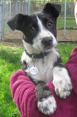 Quinn is a sweet Border Collie mix. She is posted with her sister Queenie. She's smaller than her sister, but oohh so cute! They like to play together and of course after lots of play, they huddle up to snuggle for a nap.