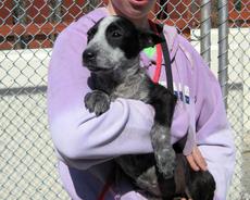 is an adorable puppy, about 5 1/2 months old and 18 lbs. She is a perky, friendly and very playful sweetheart. She will play with any toy available and is learning to play catch. She is being fostered with other bigger dogs and can certainly hold her own. She is also great with children and adults. Queenie is very affectionate and loves to be next to someone. She is good on a leash and almost totally housebroken. She also sleeps soundly through the night. Thank you Emily Palmer for sponsoring my ticket to freedom!