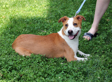 "This is probably the sweetest dog I have ever fostered" the foster mom tells us. She is calm, not a barker, gets along with everybody. She is affectionate but not pushy. She loves cats, dogs, kids.... This girl would probably be happiest in a quiet home since she is so calm. She loves meeting other dogs when she is out for her walks or even when they come and visit, especially if they are small like her. Quigley is about 22 lbs and around 1-2 years old and a dream dog!