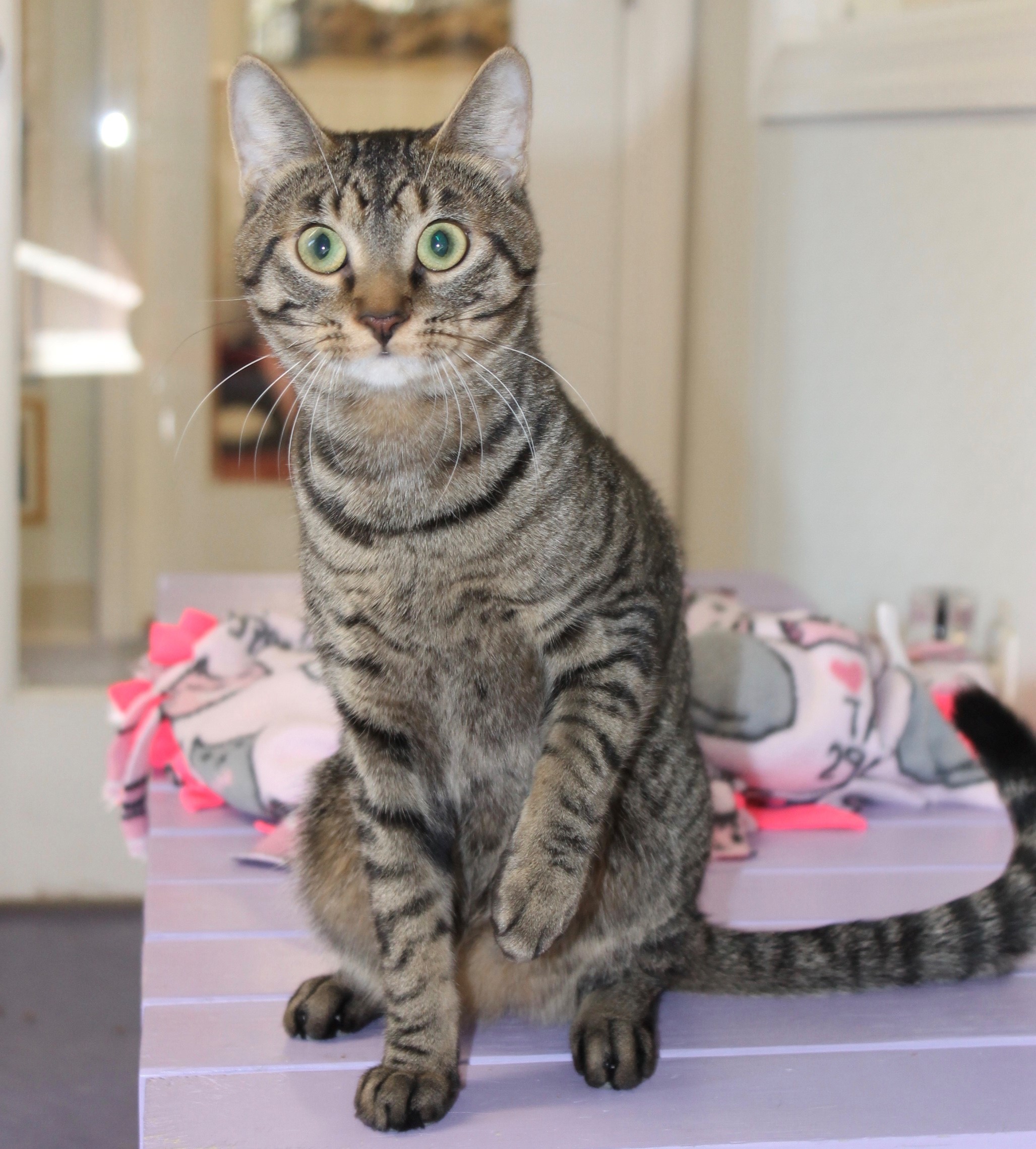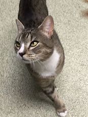 is a beautiful and sweet tabby, about 3 years old.