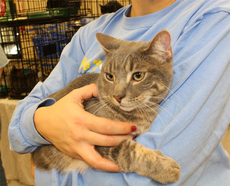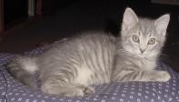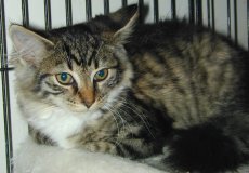 Raven is a beautiful light colored Tabby, about 6 months old. She is very sweet and friendly.