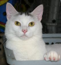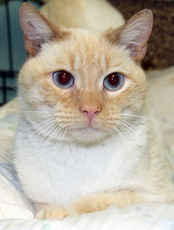 Rudy is a beautiful male Siamese mix, mostly white with light orange highlights and beautiful blue eyes. He is a very sweet, friendly boy!