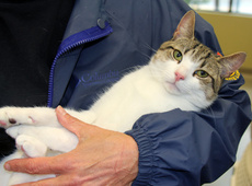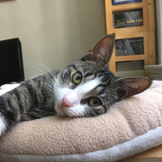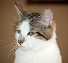 is a good-natured boy who would thrive in a loving home. He was given up by a woman whose boyfriend was allergic. He's friendly with other cats.