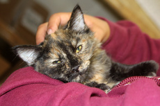 Rapunzel is a very sweet long haired Tortoiseshell kitten, about 12 weeks old. She loves to be with you and loves to cuddle.