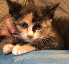 Rosie is approximately 8 weeks old (as of 9-18-18) and a super sweet little girl! This lovely charming calico loves to cuddle and starts purring right away. She is quickly adjusting to life in a busy, family household, and she’s even getting used to dogs. This little girl will quickly fit in anywhere. An excellent kitty for an active family. (jr)