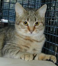 Rex (a/k/a Greg) is a true tiger! This young boy's tabby stripes, lynx points, and unique copper coloring even, his belly is tawny-colored,give him the look of a miniature jungle cat. But gaze into those big green eyes and all you see is kindness. Rex has a soft spot for his friend and cage-mate Jasmina, whom he'll spend hours grooming as they sit by the window together. Sweet, affectionate, and playful, Rex gets along wonderfully with other cats and is looking for a home where he and Jasmina can stay together.