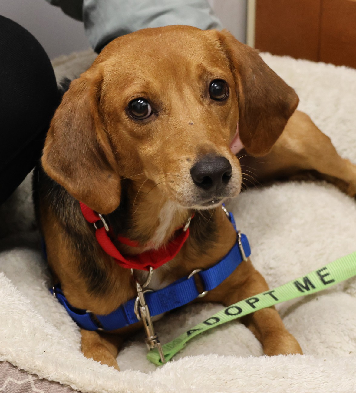 Randy is a handsome Beagle mix, about 2 years old and 20 lbs. He is just a wonderful little guy that his foster mom can not stop saying enough good things about him. He loves to sit in her lap and is always following her around. He is a very sweet dog-- housebroken, walks well on the leash, relates well to other dogs & people and has a ball at the dog park. Anyone would be lucky to have this great dog!