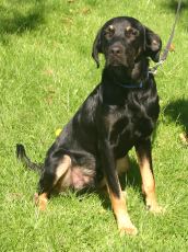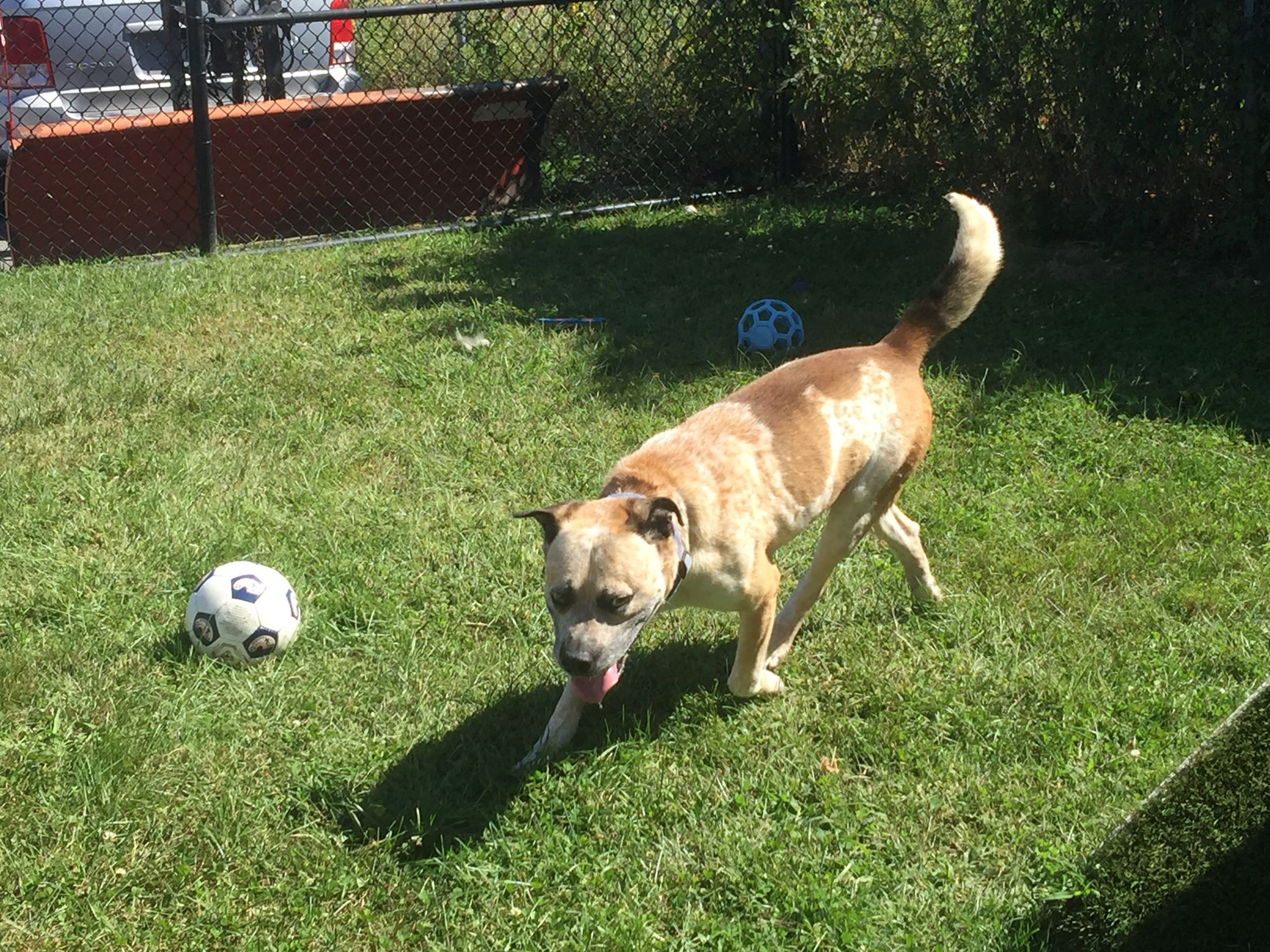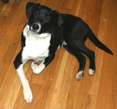 is an adorable and very playful 7 month old, 28 pound pup. He loves to romp with his foster siblings (two much bigger retriever mixes and one smaller beagle/basset mix) and even likes to play with the cats. He is housebroken and good on a leash. Rambo is learning how to catch a ball and is entertained by all toys. He is passed the chewy stage but still finds all toys and laundry very interesting (his favorite sleeping spot is in the laundry basket). He comes when called, shares his food and toys, and thinks that car rides are the best. Rambo would enjoy an active home since he loves to have people and other critters around. Rambo was born with hip dysplasia and was evaluated by an orthopedic surgeon as well as consulted with by the orthopedic dept of Cornell University Vet School. It was determined that he is doing so well that surgery is not needed at this time. He will be fine as long as he gets exercised and kept trim. He is an amazing runner and climber. He loves to go to the park and run with the other dogs. Thank you Rochelle and Irwin Cohen, Maxine Liebman, Joan Clarke and Camille L Hansen for helping to pay for my vet care!