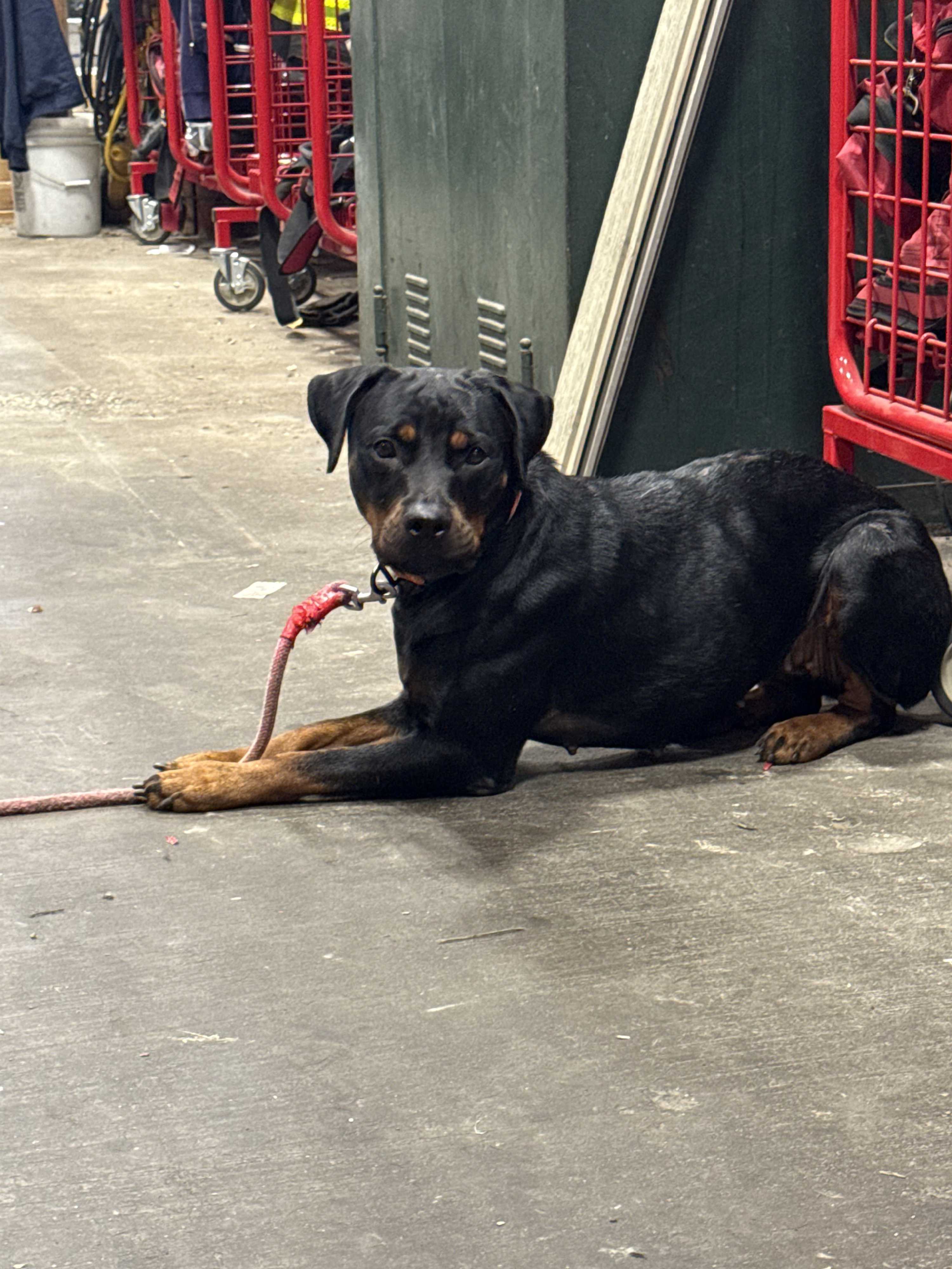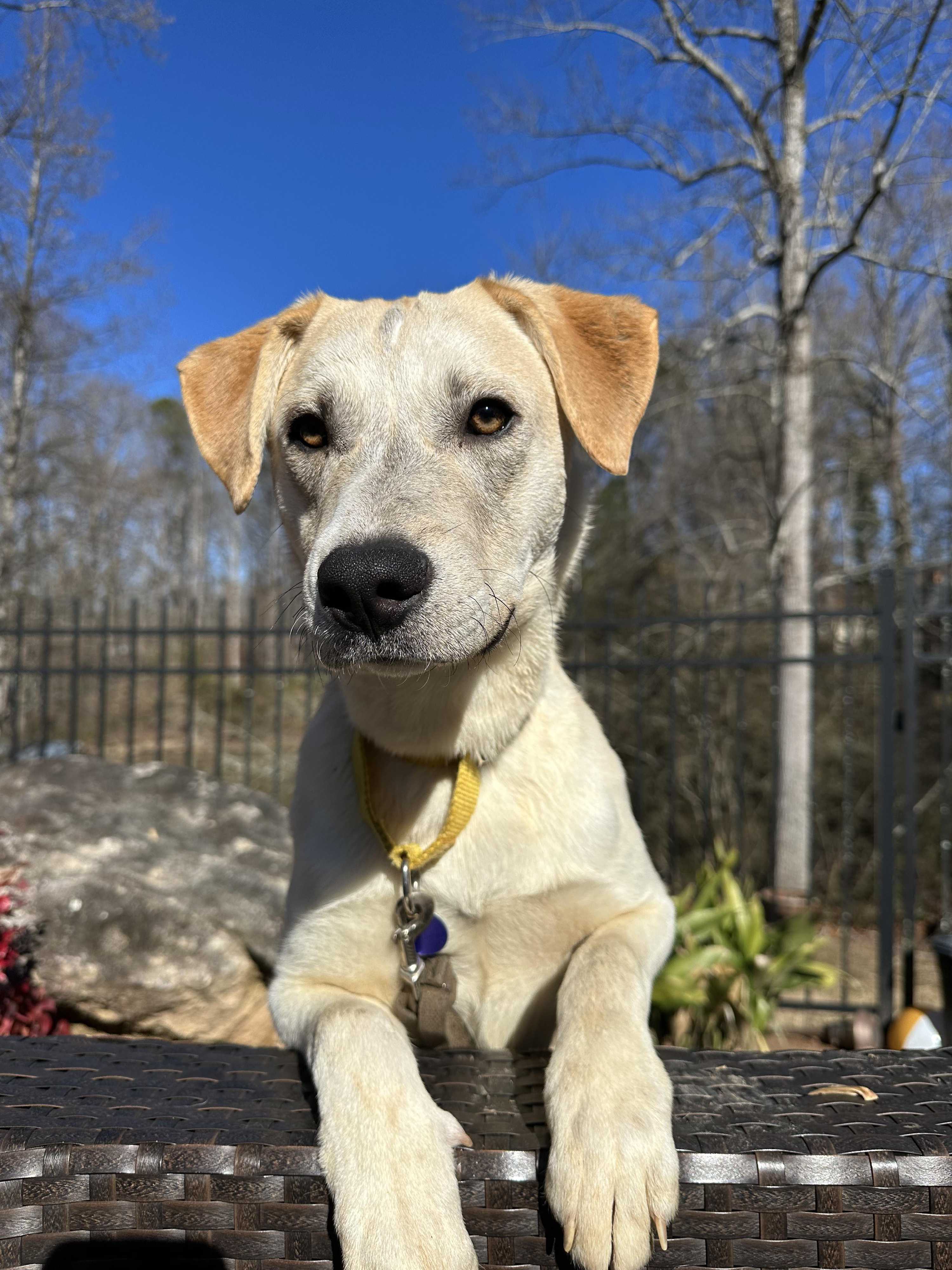 is an adorable boy, under a year old and around 40 lbs. He is sweet, friendly and happy-go-lucky.