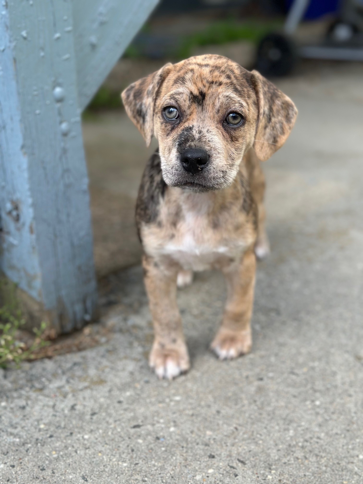 Runt Runt is a mild-mannered puppy with a gentle soul. She is shy at first but warmed to her foster mom right away. She is loving, playful, and cuddly. Runt Runt is crate trained, potty trained on a schedule, and walks well on a leash. She is a fast learner and already knows how to sit, stay, and lay down. She enjoys laying in the grass, playing with sticks, and she’s great with other dogs! If you are looking for a loyal companion with amazing coloring and expressive eyes, Runt Runt is the dog for you! Please apply to adopt this sweetie on our website: ny-petrescue.org