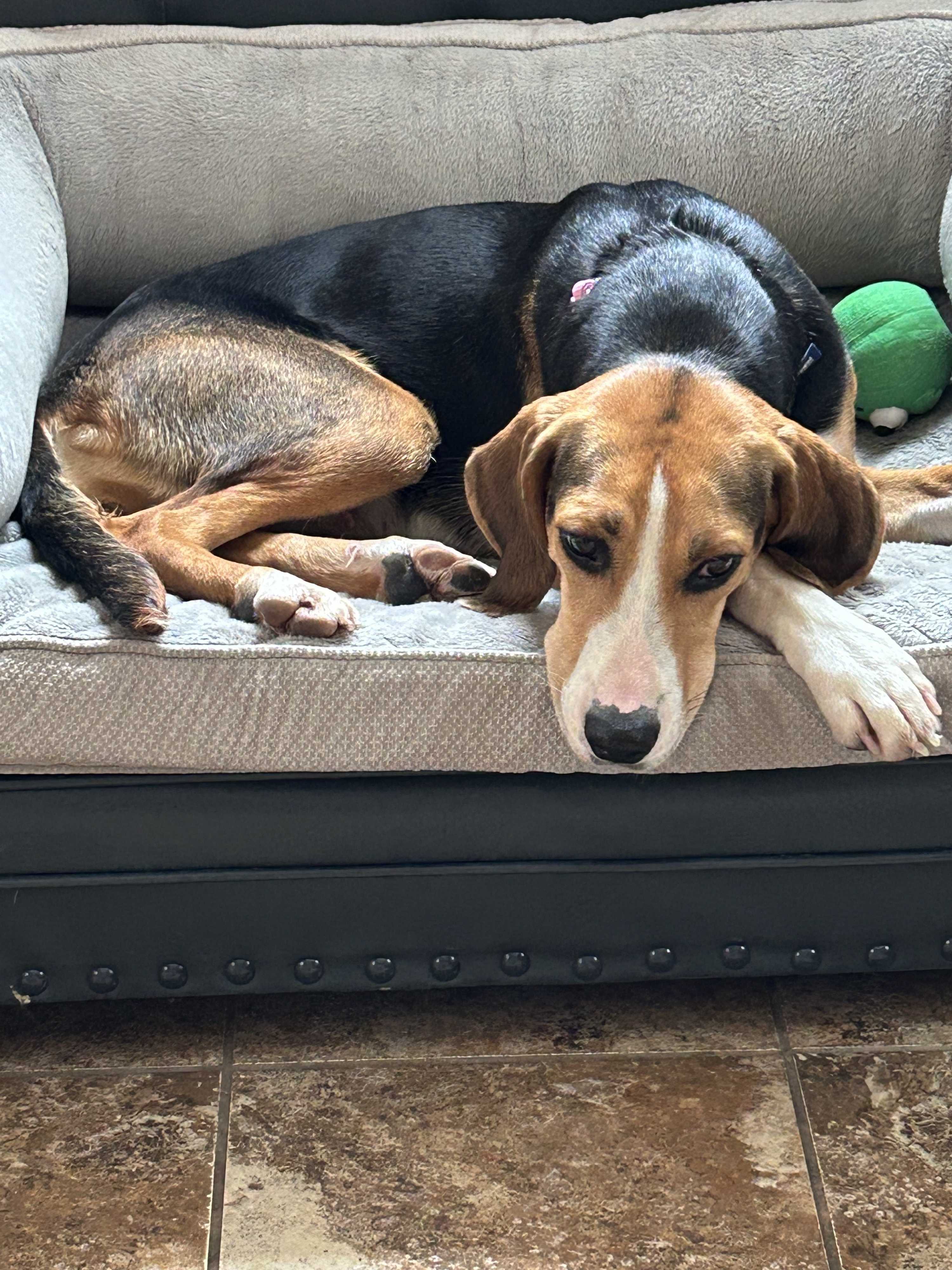 Raindancer is a beautiful 10 month old hound/lab mix. She has good energy and is friendly, playful and happy to be with both humans and other dogs. She is sweet, silly, social and walks nicely on the leash. Be sure to complete an application on line and continue to monitor our website for updates. If you are interested in this dog, please submit an application directly to our website at www.ny-petrescue.org. Only applications submitted directly to Petrescue will be considered.