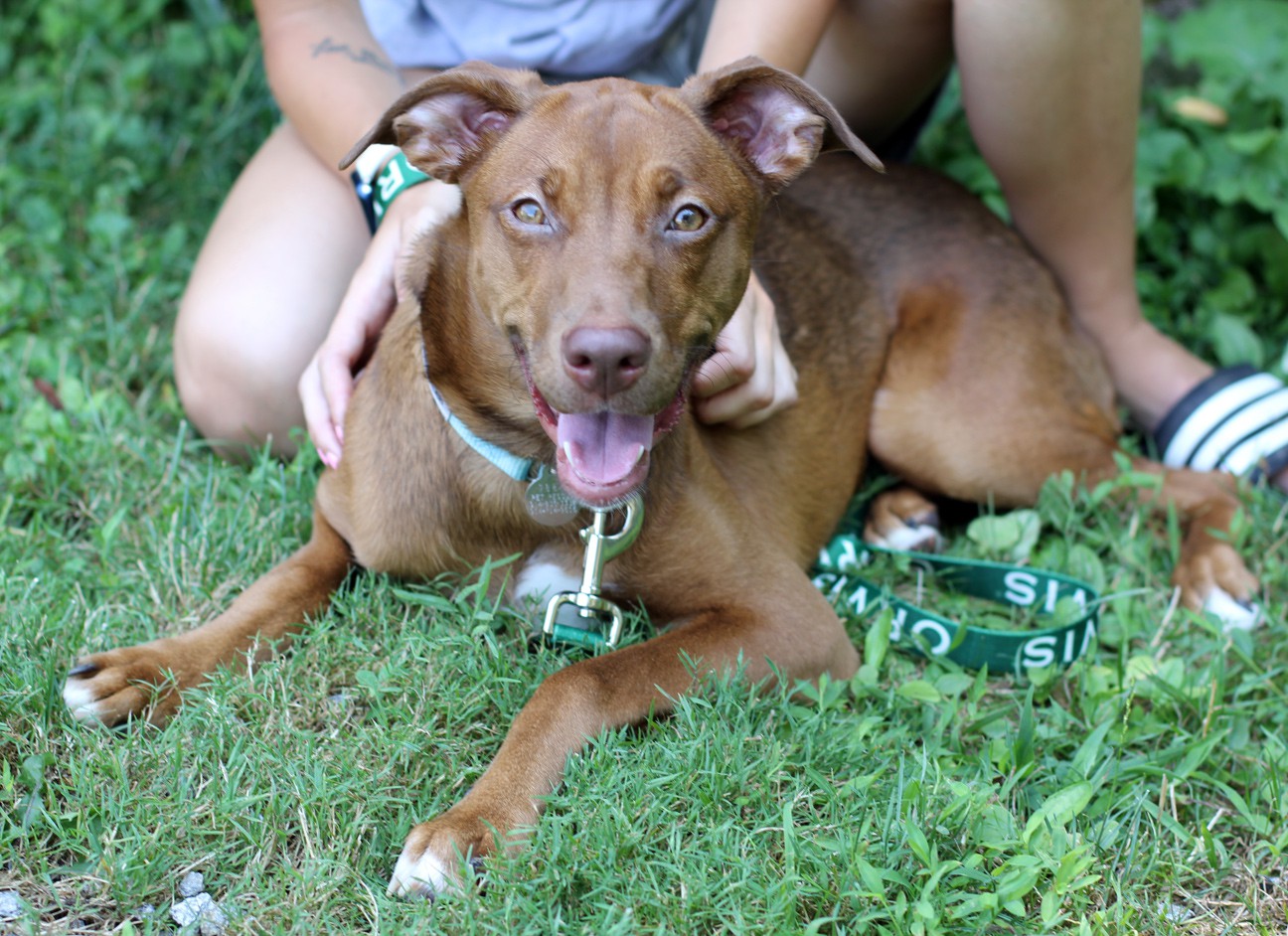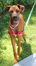 Raindrop is a pretty female pup, about 5 1/2 months old. We're guessing this litter is a Hound/Rhodesian Ridgeback mix. They are big goofy pups that will likely grow to be on the large side and they are working on their house training.