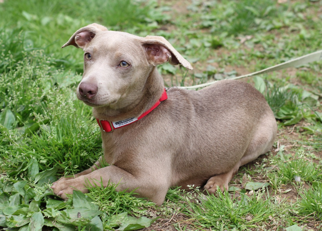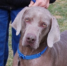 Ruger is a lover boy. He is a pure breed Weimaraner. He is about 18 mo. old and is about 75 lbs. He is gentle, loving and gets along great with other dogs. He loves to go for walks, run at the dog park, play ball for about 30 seconds and most of all, he loves to be petted and made a fuss over. He came to us with a bad case of mange and is recovering nicely from it.
