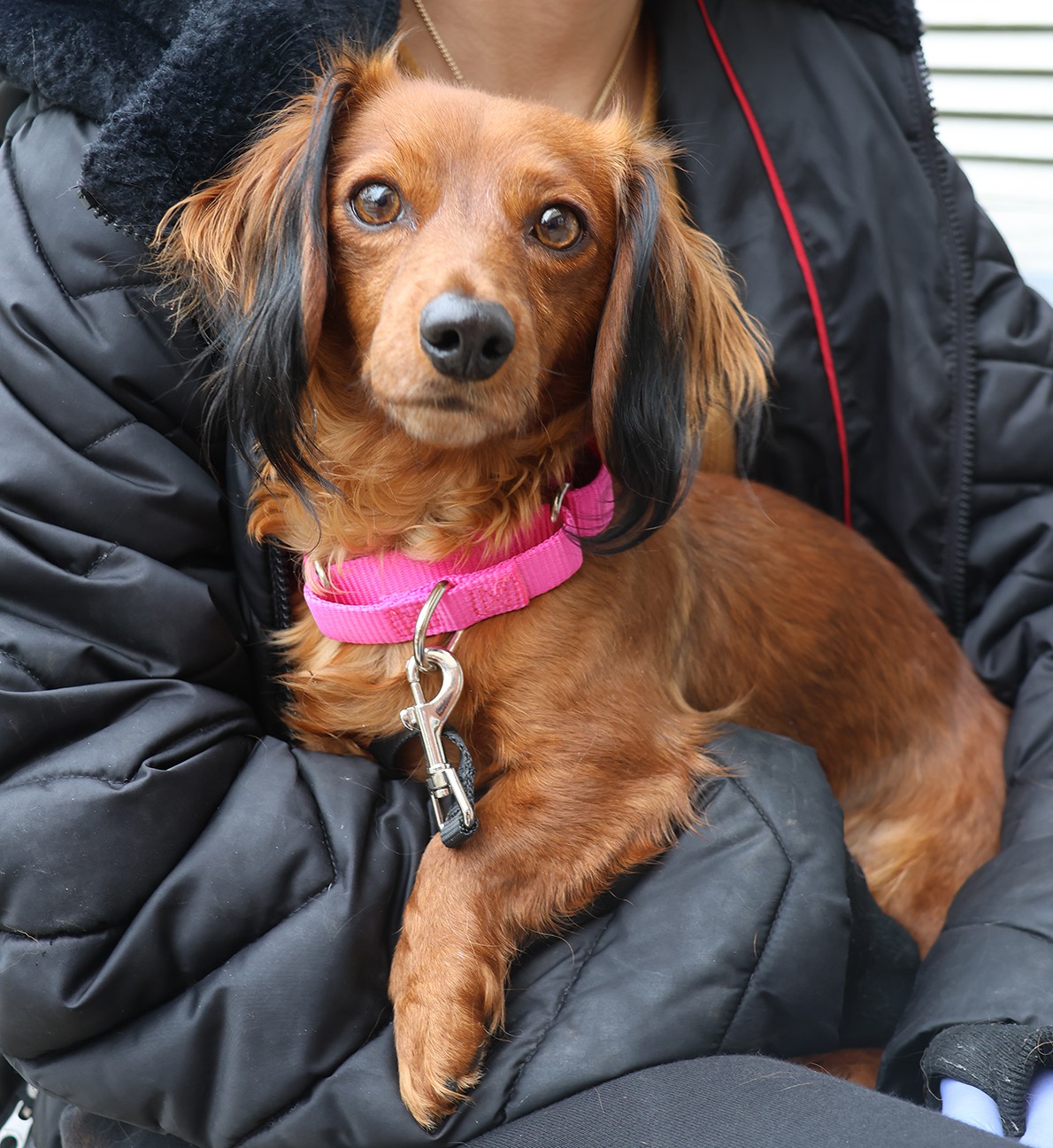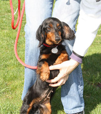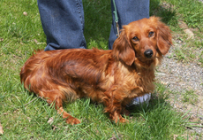 Ruby Red is an adorable pure breed Long Haired Dachshund and around 8 lbs. She is very sweet and friendly. She comes to her foster mom very easily and likes going to the dog park. She is good around people of all ages, but should be in a household with older children. She is working on her housebreaking.
