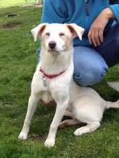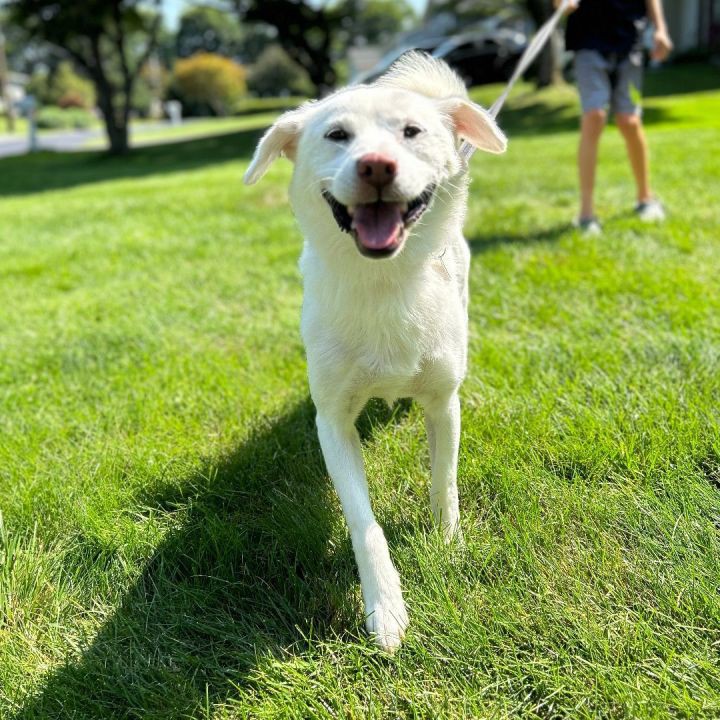 Ryder is a 3 month-old, 22 pound, beautiful white Shepherd mix. This precious puppy has a sweet disposition, loves inside playtime with his toys, being chill in his dog bed, by your side wherever you go, curling up next to you, or just keeping you company -- he doesn’t want to miss out on anything! Once he’s recharged from a puppy nap, his favorite time is outside chasing balls, exploring nature around the yard, and taking walks. Ryder is doing well on his leash, is not a big barker, and his potty training is well underway. He’s learning quickly to respond to new commands when consistently demonstrated. In his foster home there are no young children or other pets but he has stolen the hearts of his foster family, and is affectionate and highly social with all whom he’s met. This little pup is truly a wonderful and loyal companion who is lively and playful, great at hanging out, and an absolute sweetheart! If you are interested in this dog, please submit an application directly to our website at www.ny-petrescue.org. Only applications submitted directly to Petrescue will be considered.