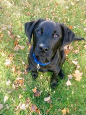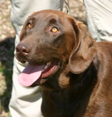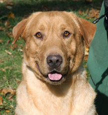 Russell is a great dog that has the typical lab personality. He is outgoing and friendly. He good with other dogs and still very playful at about 1 year old. He weighed in at 63 lbs at the vet. Russell is the perfect gentleman. He has a calm gentle nature and is very sweet. He walks well on a leash, and is learning basis commands. He seems to be housebroken and is becoming crate trained.