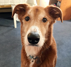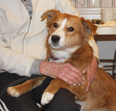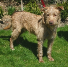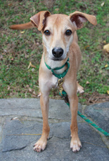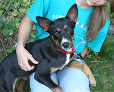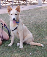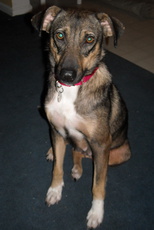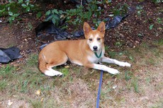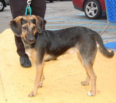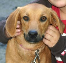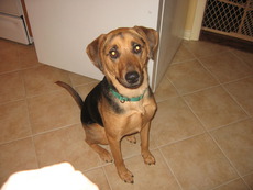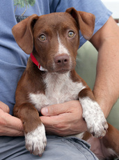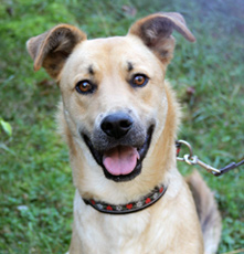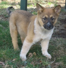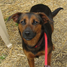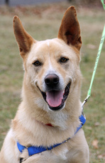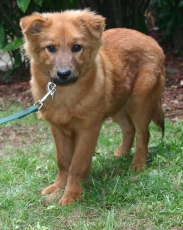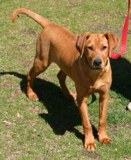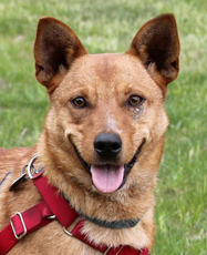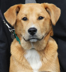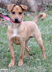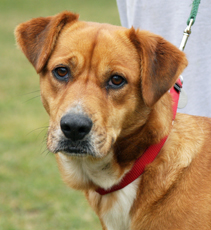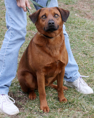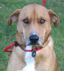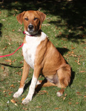 Rusty is about 25 lbs, 1-2 years old and very pretty. He a very good boy and very well behaved. He looks like a Pharaoh hound mix. He is very cuddly and loves to sit in your lap. He is good with other dogs and plays very appropriately. He is enrolled in our tracking class and is really good at it. He just loves to be out there and have fun. He would do best in an adult home or a home with older children since he can still be a bit mouthy when he gets excited.