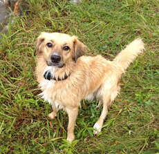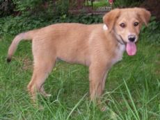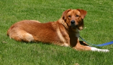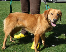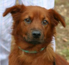 This dog looks like a darker version of the Duck Toller, or like a small Golden. He is about 32 lbs and around 2 years old. He is very playful. Loves children & is interacting very nicely with other dogs. He is housebroken & easy to walk on a leash. He is all around a great dog that is more on the calm side. Thank you Susan Fox for sponsoring my ticket to freedom!