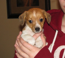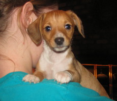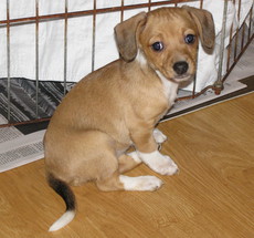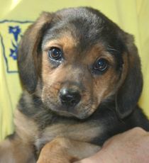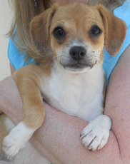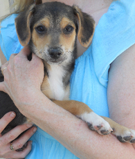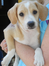 Ryder (male) is one of Dawn's 4 adorable puppies, about 12 weeks old and around 6-7 lbs. Dawn, their mom is also posted and looks a like Beagle mix -- we do not know what breed the dad was. They are very sweet and playful! Click here to watch a video.