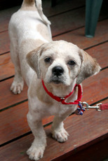 Rusty is the cutest guy with the most expressive brown eyes. He is a Beagle/Spaniel mix with just a little Jack Russell added to give him that extra-special personality. Rusty is between 5 and 6 years old and weighs around 30 pounds. He is completely housebroken, walks very well on the leash and rides great in a car. He also sleeps through the night (preferably cuddled up next to his foster mom) and does not stir until he hears someone up and about. He is friendly with other dogs and does a great little happy dance when he sees you're ready for a walk. Rusty knows his basic commands (see video) and is crate trained. His favorite activity though is cuddling. His head will always end up in your lap or he'll be at your feet waiting for a quick scratch between the ears. Rusty's only little quirk is that he is weary of strangers, but if introduced slowly and quietly, his tail will begin wagging and he'll make them part of the family. He is so easy to take care of and is a truly special dog that wants to give you his undying love and devotion. He's a great boy!