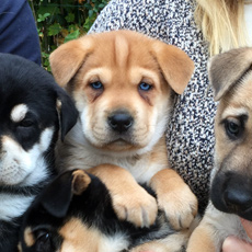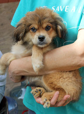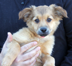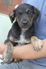Robust and radiant, Raisin is ready to rock! A lab/shepherd mix, this 4 month old female pup loves companionship and is well on the way to being housetrained. Along with her sister, Ruby, she loves to frolic and explore. But once in her pen, she is quiet and snuggly. Raisin is very affectionate and loves giving kisses to people and other dogs. She sleeps through the night but is ready for action in the morning! She is a real beauty!!