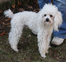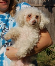 is a 4-5 year old toy poodle who is made for the circus. At only 9 pounds he seems to be made out of springs and can just straight up high but he is learning that this is not a way to get attention. He is an incredibly fast learner and has made himself right at home with his foster family of two big dogs and two cats. He loves to retrieve tennis balls and then settle into your lap on the couch. Rudy is both non-shedding and housebroken.