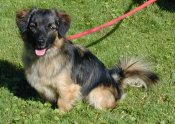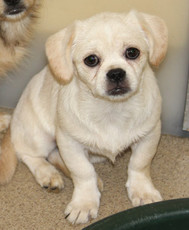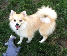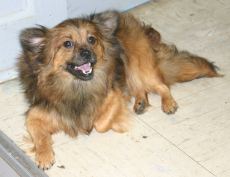is a very sweet and handsome Pomeranian/Peke mix, about 1 1/2 years old and 12 lbs. He has a calm, layed-back personality. He is fine with other pets as long as they are not in his face. He is very much a snuggle boy. He would do best with older kids due to his size. He is house broken and does not like the hot weather. He starts huffing and puffing in the heat. He loves to be cool and will even go into the water to cool off. He loves the woods and would love to chase whaterver moves if he could. He struts around on the leash like a little show dog. Everybody who sees him falls in love with this little boy. He is also good with cats as long as they give him his space. He loves to sleep like a baby in your arms. He is very spoiled in his foster home and hopes to find a forever home that will spoil for the rest of his life. He will pay back with lots of love and affection.