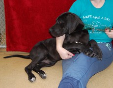 in the TV, making funny noises and faces at it. Really a nice, big loving puppy! Please fill out an adoption application.