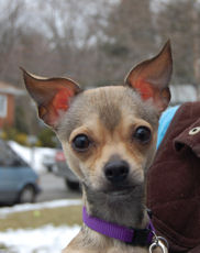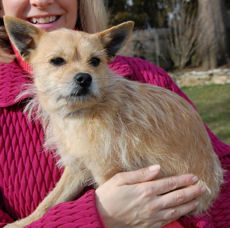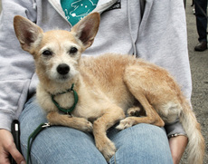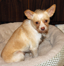 Rudy is a wonderful little Chihuahua/Wirehaired Terrier mix. He is 3 years old and weighs 7 lbs. He is very sweet and friendly with everyone: other dogs, cats, and people. Rudy walks well on a leash, is good in the car, and completely housebroken. He loves to go for walks and will do a little dance for you when you pick up his leash. Rudy is quiet and calm at home and enjoys to curl up on the couch next to you and get belly rubs. Because of his delicate build he should not go to a home with kids under the age of 10.