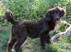 Ruffi is an adorable Brittany Spaniel/Poodle mix, about a year old and 35 lbs. He is friendly with everyone, people and other dogs.