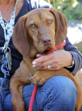 is an energetic, loving and very social Vizsla mix. At about 6 months old (and 31 pounds) he still needs to learn some manners (like not taking food off of the counter!) but he is great on the leash, shares his toys and appears to be housebroken. He loves to sit on my lap and give kisses as well as explore the backyard of his new foster home. He gets along great with the other dogs he is visiting. Randy is up to date on all of his shots and is neutered. He will make a great addition to an active family.. He loves kids! Thank you Marianne Bargiel for sponsoring my ticket to freedom!