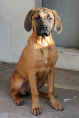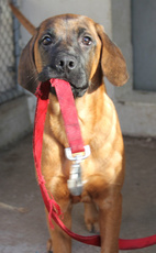 Raindancer is a handsome male pup, about 5 months old. We're guessing this litter is a Hound/Rhodesian Ridgeback mix. They are big goofy pups that will likely grow to be on the large side.