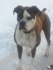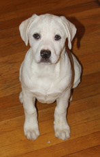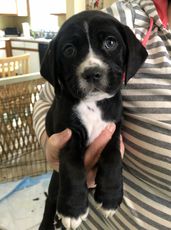Molly and Wishbone are Boxer-Hound mix puppies and are around three months old. They each weigh 12lbs. Molly is very sweet and loves to be around other people and other dogs. She enjoys chewing on sticks outside, running around the yard and exploring. She is a little shy at first and very smart. She loves her brother Wishbone. Wishbone is white with tan spots. He is very docile, loves to run around with his sister, and nuzzle up against any person he can find. He loves dogs, people and cats. Both puppies would be great family pets. Both are crate trained, and are somewhat paper trained.