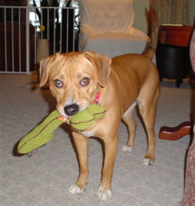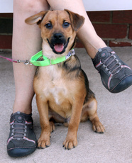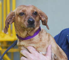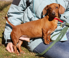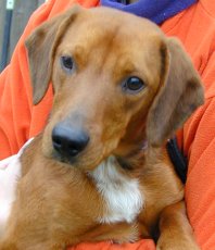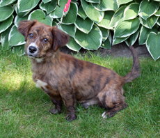 Rufus is an adorable Dachshund mix, about 4 years old and 22 lbs. He is a tad timid at first, but bonds quickly and is eager to please. He is housebroken and loves to play with other dogs in the yard and at the dog park.