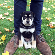 *ADOPTED* Rufus is one in a litter of 5 pups. They are about 6 weeks old now (11/14/15) - we are accepting applications for them now but will stay this their mom for a couple of more weeks. One word to describe this litter: mushes! They are just the sweetest, snuggliest, playful little cuties. Their mom looks like shepherd/husky mix. Rufus is a male and the largest of the litter with the most adorable wrinkly face!