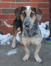 Ralph is a handsome 2 year old 32lb heeler-terrier mix that arrived at Pet Rescue with his brother who has since been adopted. Ralph is super friendly with people and wants nothing more than to be with people all of the time. He has become our dog walker's favorite because he doesn't pull at all on his leash. Ralph loves long leisurely walks finished off with a cuddle. He has been good with children but can be dog selective at times.