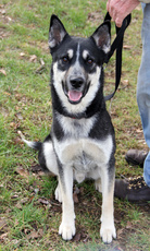 Raine is a beautiful shepherd/husky mix, she is super sweet and friendly. One look in those gorgeous eyes and you will fall in love. She came to us emaciated and nursing 5 pups. Now it is time for her to find a loving home of her own.