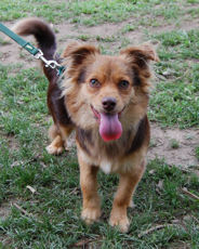 This is a sweet little guy who loves people and other dogs. He is playful and happy. He is about 22 lbs and around 1-2 years old.