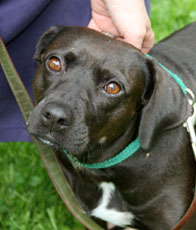 The eyes have it. Ramona's soulful brown eyes could melt your heart. Ramona came to us with her puppies, all of whom have been adopted. Now she's looking for a forever home herself. A beautiful, gentle mini-Lab mix of about 50 lbs., Ramona is completely house trained and great with everyone -- people, including children, and other dogs. This cuddly and affectionate girl is living in a foster home with two other dogs, and will be spayed soon. And although Ramona's been a mom, there's still quite a bit of puppy playfulness in her. She'll be a lovely addition to any household. But be forewarned -- she may just steal your heart away.