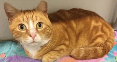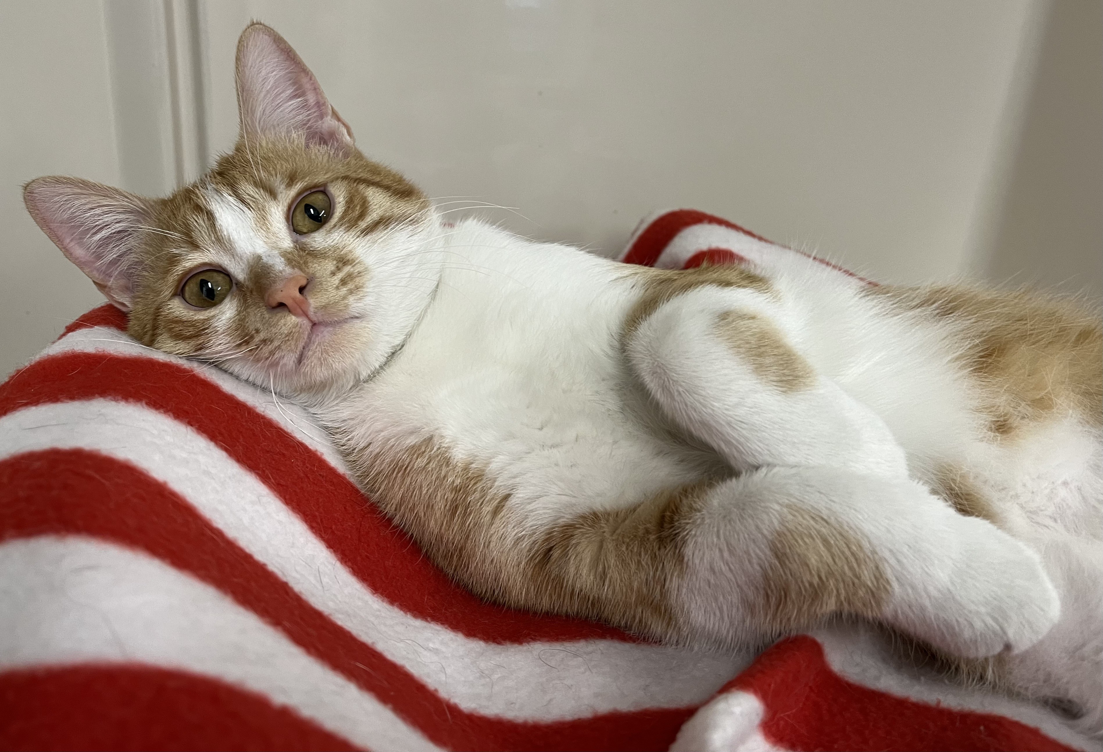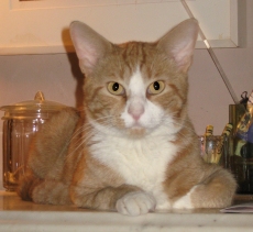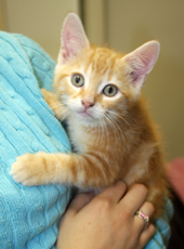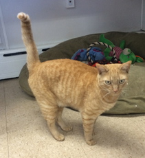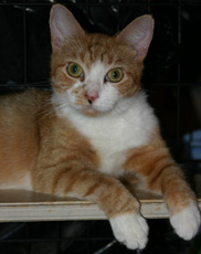 Sun King is a gorgeous, large, orange 2-year old male with a proud, sunny disposition who cuddles up to adults. This regal feline appreciates respect for his independent spirit. Friendly with other cats, neutered and up-to-date with all immunizations.